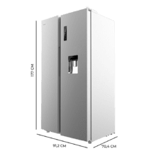 Réfrigérateur américain Bolero CoolMarket SBS 559 Inox E Side by Side Inox d'une capacité de 559 litres, 177 cm de hauteur et 90 cm de largeur, classe E, avec système Multi Air Flow, Total No Frost, inverseur plus moteur.